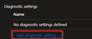 From the Diagnostic settings menu select "+ Add diagnostic setting"
