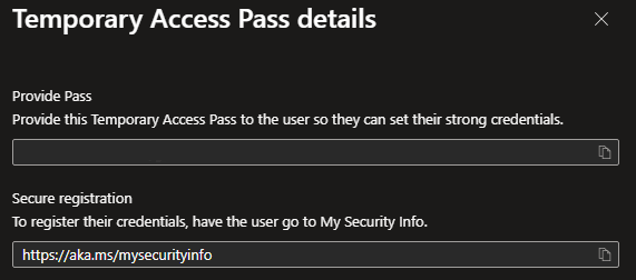 We now have a TAP for our user. You can now instruct your user to browse to https://aka.ms/mysecurityinfo where they can configure MFA. Using TAP can also be used when for example you want to rollout a Autopilot device for a specific user.