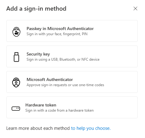 *Note: These options are my preferred, but if you have an existing environment you might also select some more options in order to have a smooth migration to passkey and not locking yourself/organization out. See my other blog on how to identify which methods your organization is using.