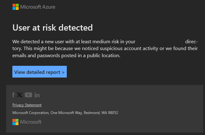Now when we have a Risky user that has a level Medium or above, we will receive an email looking like this: