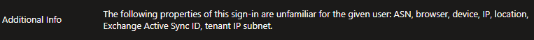 To see more details select "Detection time". Under "Additional Info" we will see more information regarding this sign-in: