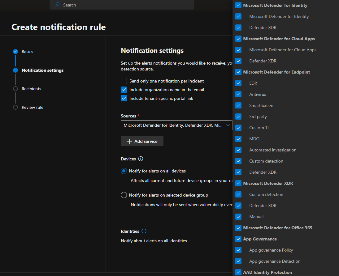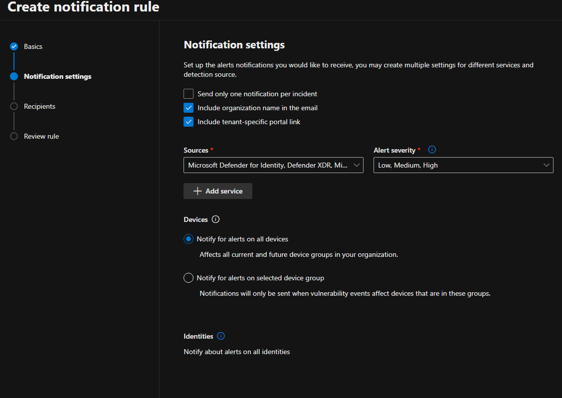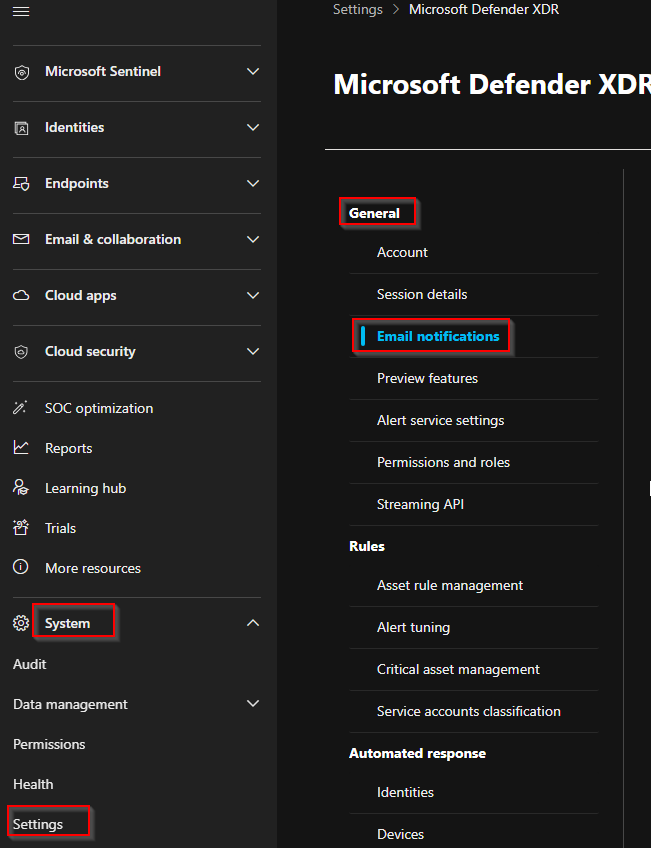 You could/should also setup more higher level notifications to get more alerts from your M365 environment using Microsoft XDR. Follow these steps to configure these notifications as well: