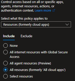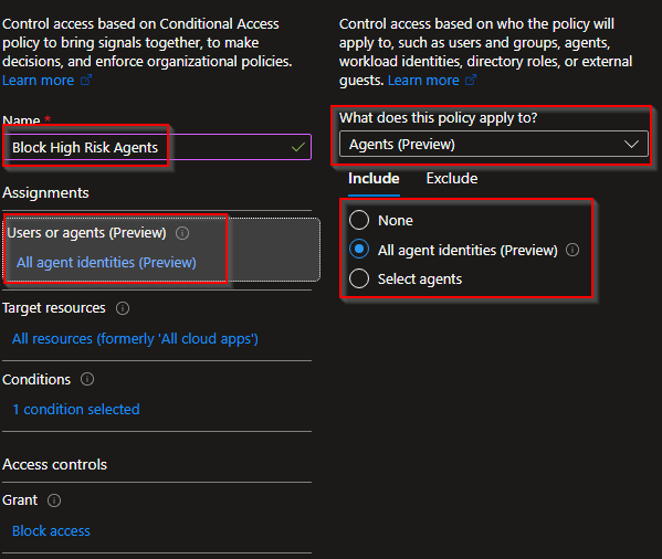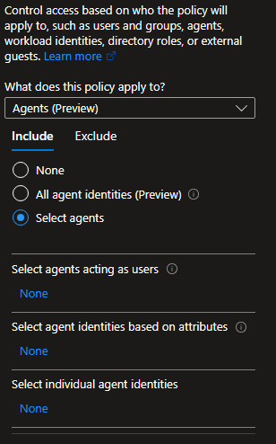 Include: Select "Agents (Preview)" following "All agent identities (Preview)