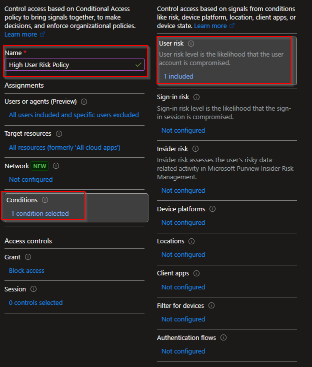 4.1 Block High Risk Sign-Ins / Block High User Risk