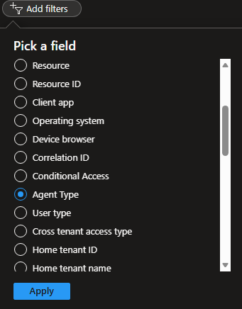 You can also see the agents in the Sign-ins logs by filtering agentType, agent user or agent identity. Beware that some events will be shown in the User sign-ins (non-interactive) while others appear under Service principal sign-ins.